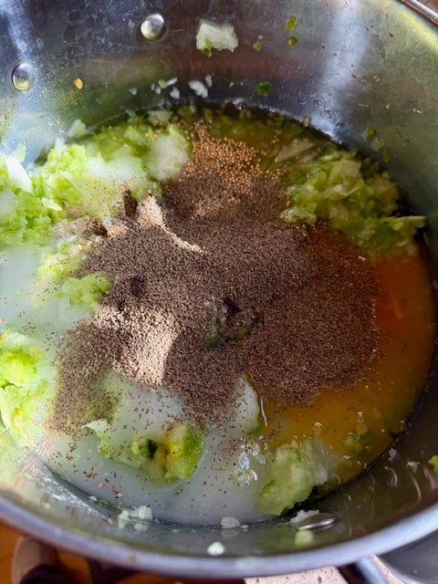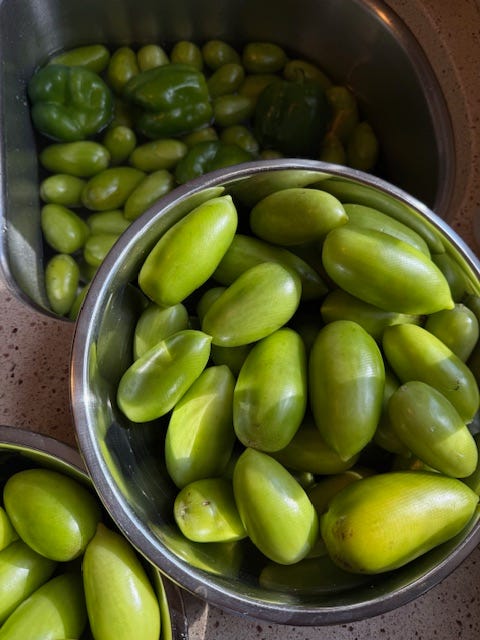 The harvest was 30lbs of green tomatoes this year! It has been years since I canned my mother-in-law’s green tomato relish recipe and I was excited to jump in with both feet….then I couldn’t find the recipe!! I searched high and low, through recipes I posted on my previous blog, cookbooks, even my old Ball canning book, that I hoped I had slipped it in. Nothing! I was so disappointed, and began to look online for a replacement recipe. I then remembered that I had sent it to my Friend Colleen’s sister-in-law Sara several years ago so I reached out and within a minute, *Ping* the recipe was back in my possession via text! Sara saved the day!!