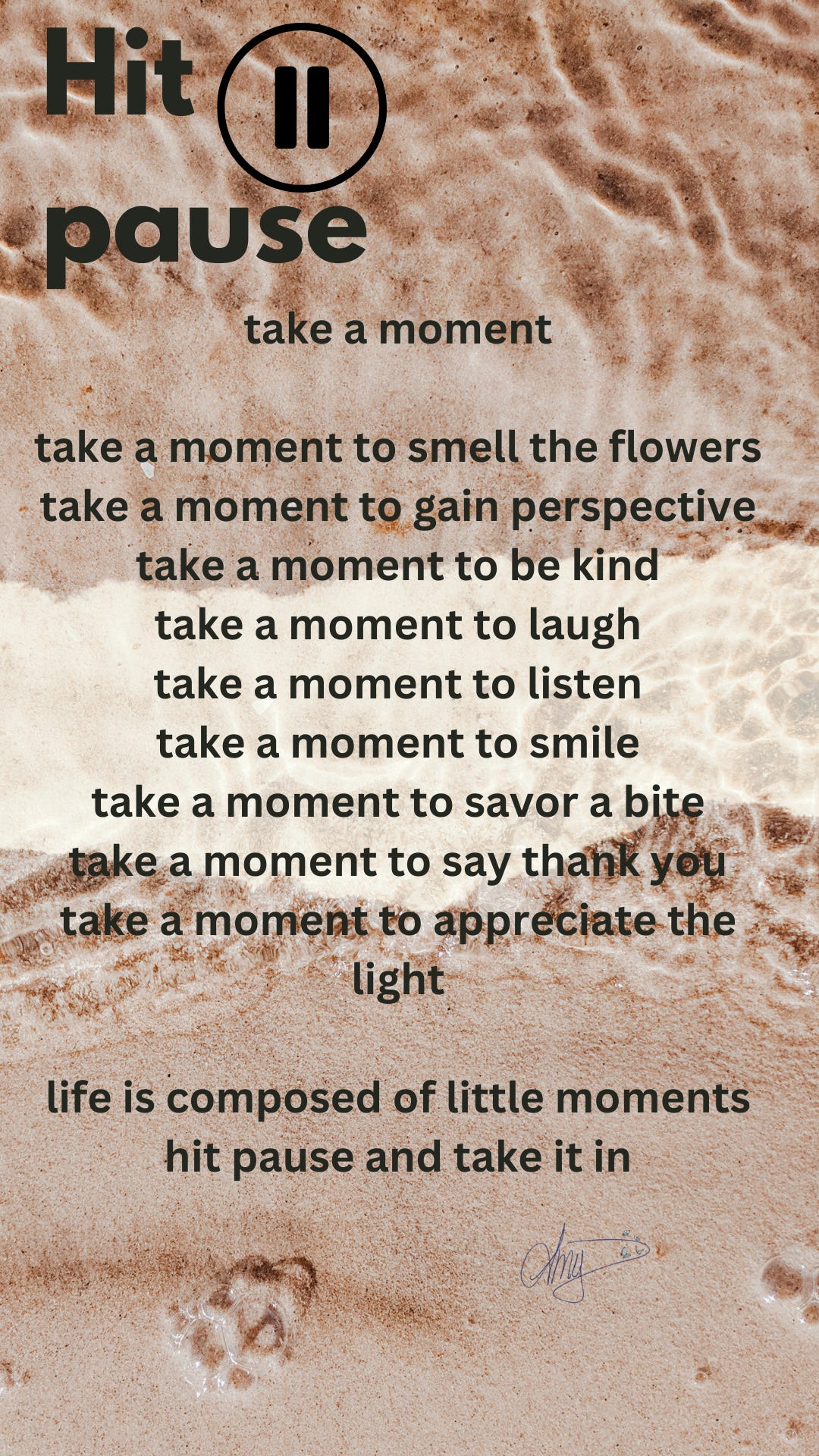 Take a MomentWhat happens when you hit pause?Amy RayMay 03, 2024ShareThanks for reading The Meandering Muse! Subscribe for free to receive new posts and support my work.SubscribePreviousNext