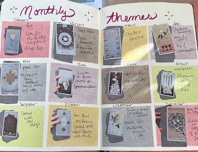 One way to direct this practice is by pulling a tarot card for each of the twelve days and using it as a catalyst to inspire your intuition and focus. Each card represents one month of the following year and you can create a monthly theme through your reflections. With Claire’s (the Moon Shed) help to guide us through this ritual, I found a creative and peaceful way to set monthly intentions for the year. This gives me a definitive to reflect on each month and tune into the world around me. I look forward to celebrating quiet time all year through these monthly intentions. Here is a peak of what I’ve done in one of my notebooks, and a hint to part 3 of this series about starting your year slowly.