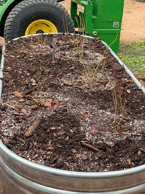 Focusing on working around our homestead brings me joy. This past weekend we planted 7 new trees, mixed 42 cubic feet of amended soil and planted 6 blueberry plants. I love heritage planting; putting something in the ground that will grow, develop and bear fruit year after year. It is a little mark that we leave for future generations, and tending those plantings year after year is fulfilling.